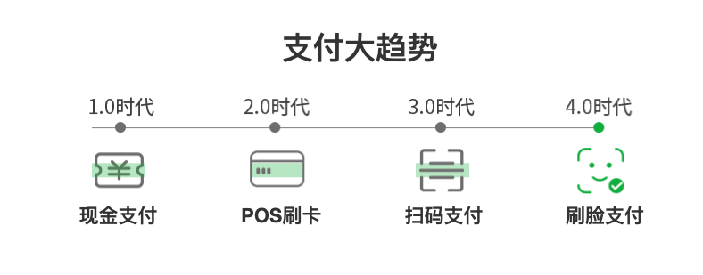 支付時代經歷了“1.0現金支付→2.0POS機刷卡支付→3.0手機掃碼支付”的變遷后,正迎來擺脫硬件設備桎梏的4.0新時代——刷臉時代。